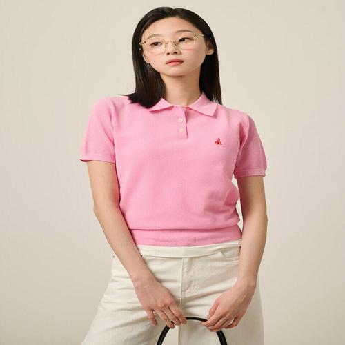 [빈폴레이디스][빈폴솔솔니트] 허니콤 칼라넥 반소매 니트 핑크 (BF5351C04X) .