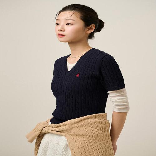 [빈폴레이디스][빈폴솔솔니트] 케이블 브이넥 반소매 풀오버 네이비 (BF5251E03R) .