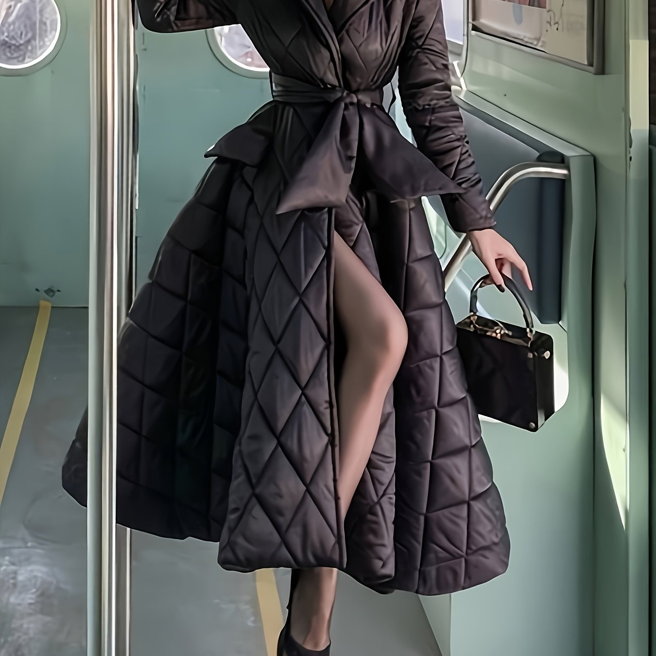 TEMU 여성용 우아한 롱 슬리브 맥시 드레스 벨트 포함 - 겨울 웨딩 게스트 가운, 정장 파티 이브닝 드레스, 프로모 & 갈라용 세탁기 사용 가능한 의상 (단색)|여성원피스|드레스