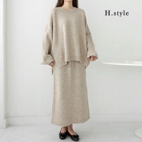 H스타일(SET)탐니트라운드치마세트/기모/니트트레이닝