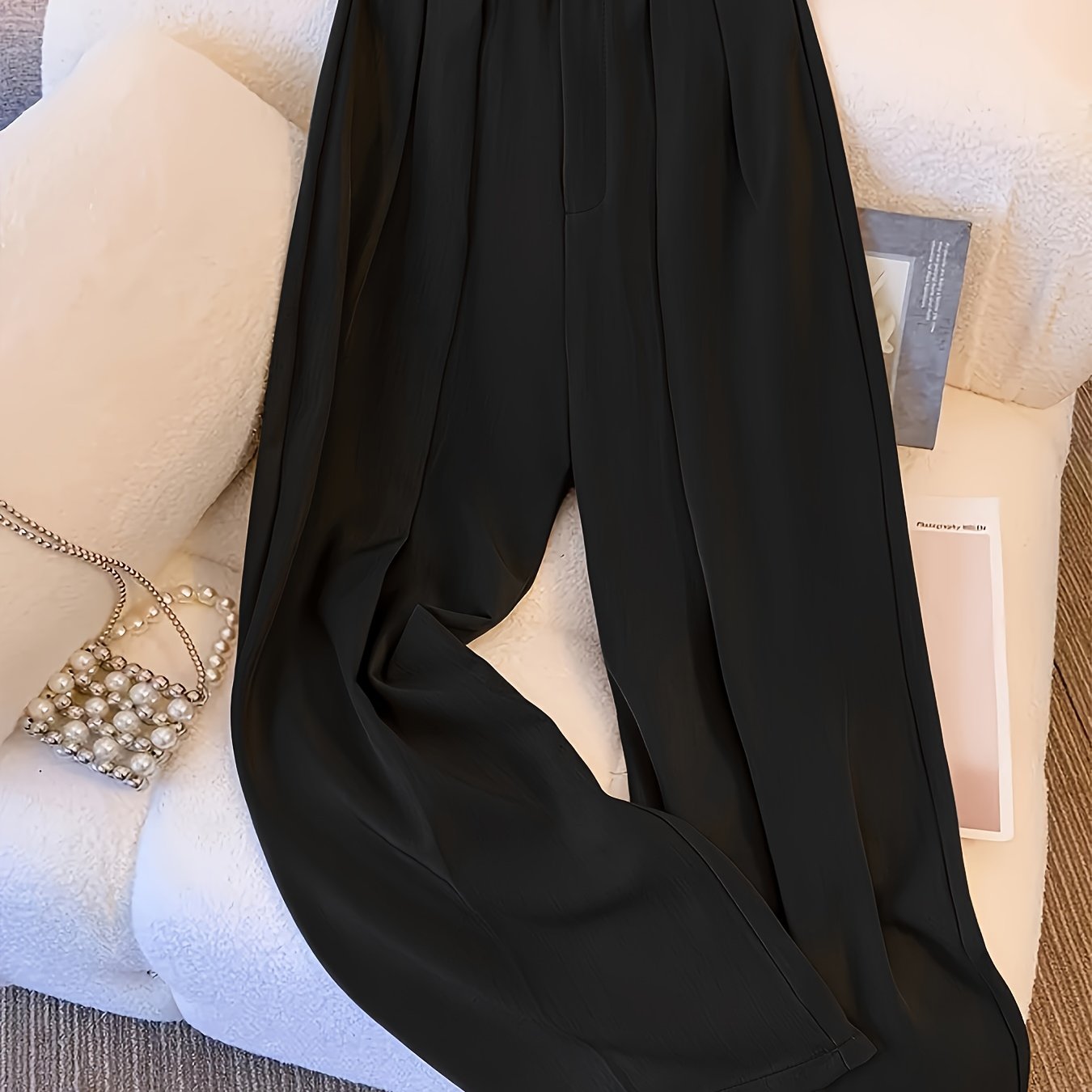 TEMU 봄/여름 패션 신상품: 여성용 우아하고 기품 있는 하이웨이스트 루즈핏 레그 와이드 레그 팬츠