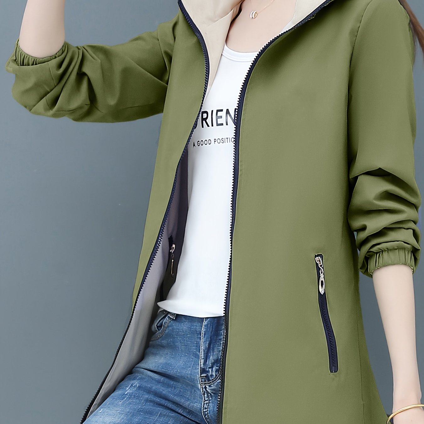TEMU 여성용 캐주얼 경량 재킷 - 컬러 블록, 후드, 지퍼업, 봄 & 가을용, 짧은, 엄마, 아웃도어, 2024