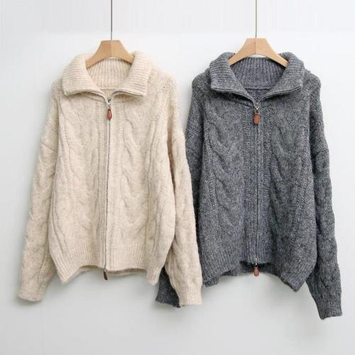 [다잇템]여자 집업 두툼한 꽈배기 스웨터 하이넥 자켓 (26803790A)