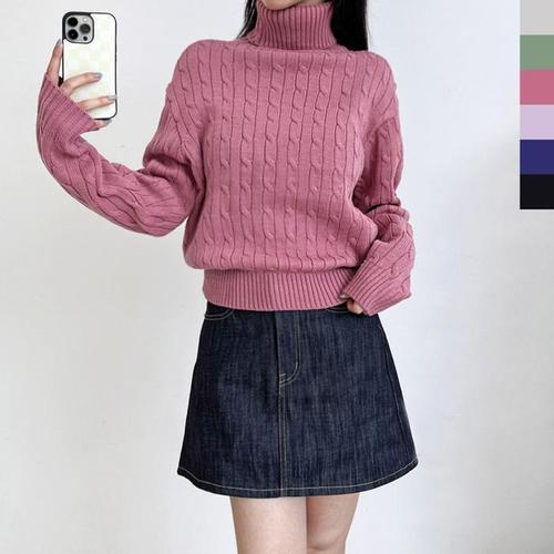 [다잇템]여자 베이직핏 폴라넥 핑크 꽈배기니트 티셔츠_3 (30100106A)