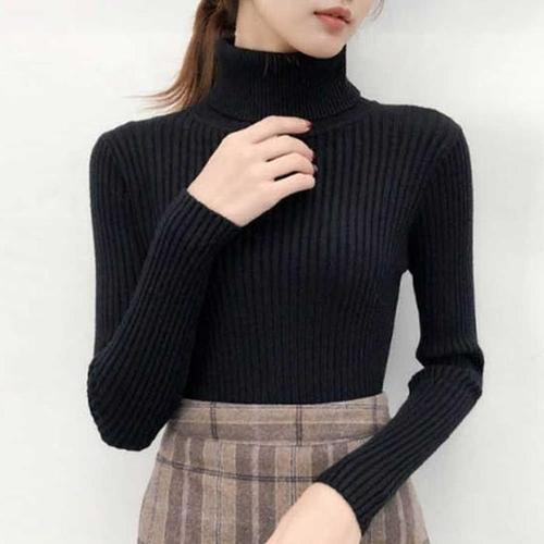 핑크셀럽 여성용 비스코스 포근 목 폴라 니트 티셔츠
