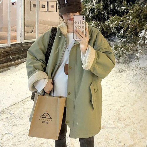 [에이치플러스몰]겨울후드 점퍼 데일리 야상 자켓 보온 (후드털탈부착)
