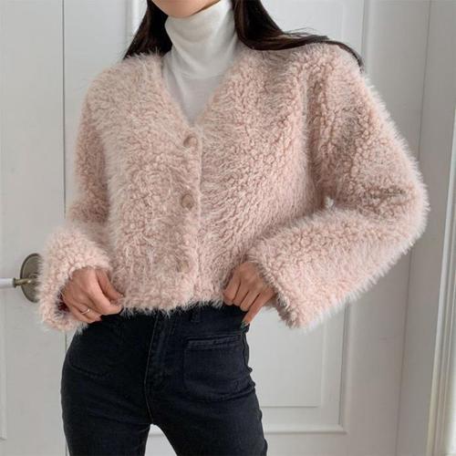 [다잇템]여자 털잠바 푸들 크롭퍼자켓 V넥 FW 뽀송 점퍼 (11886630A)