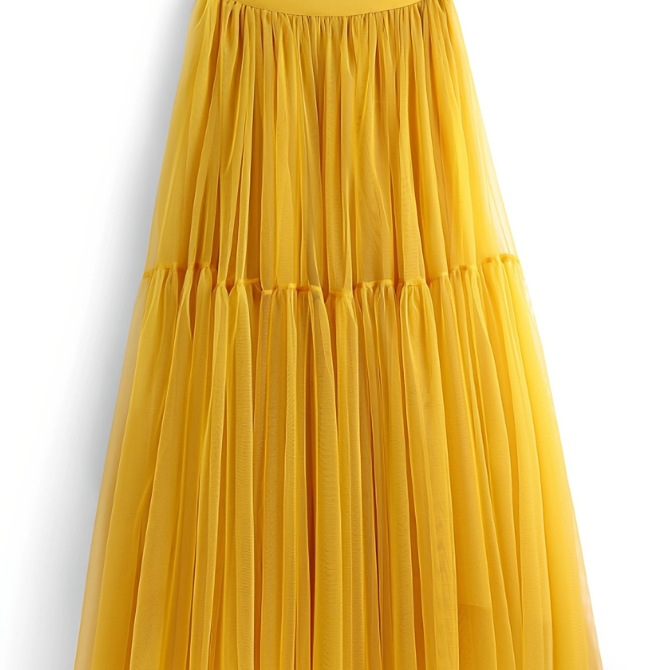 TEMU 여성용 우아한 하이웨이스트 A라인 레이어드 튤 스커트 - 멀티 티어 러플 헴, 단색, 봄/가을에 완벽, 캐주얼부터 포멀 웨어까지, 캐주얼 복장, |티어드 스커트|티어드 헴, 여성용 스커트, 여성용 스커트 우아하고 우아한
