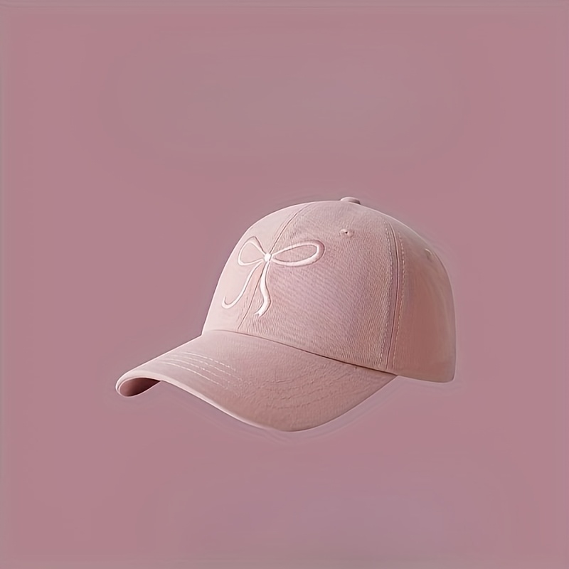 TEMU 1pc 조절 가능한 검은색 야구 모자, 핑크 리본 자수 - 접이식 폴리에스터 모자, 스냅 클로저, 달콤하고 귀여운 디자인, 여성에게 완벽한 선물, 야구 모자