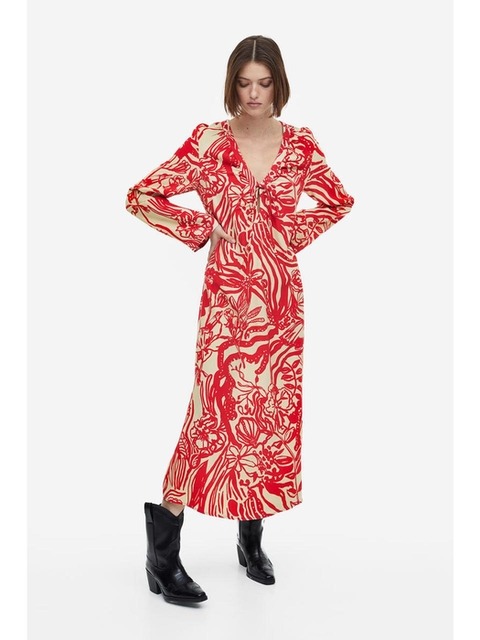 TEMU 1pc 우아한 미디 튜닉 드레스 - V넥, 일반 소매, 고신축성 플리츠 폴리에스터, 프린트 패턴, 트라페즈 밑단, 모든 계절을 위한 짠 원단 - 외출용 플리츠 드레스