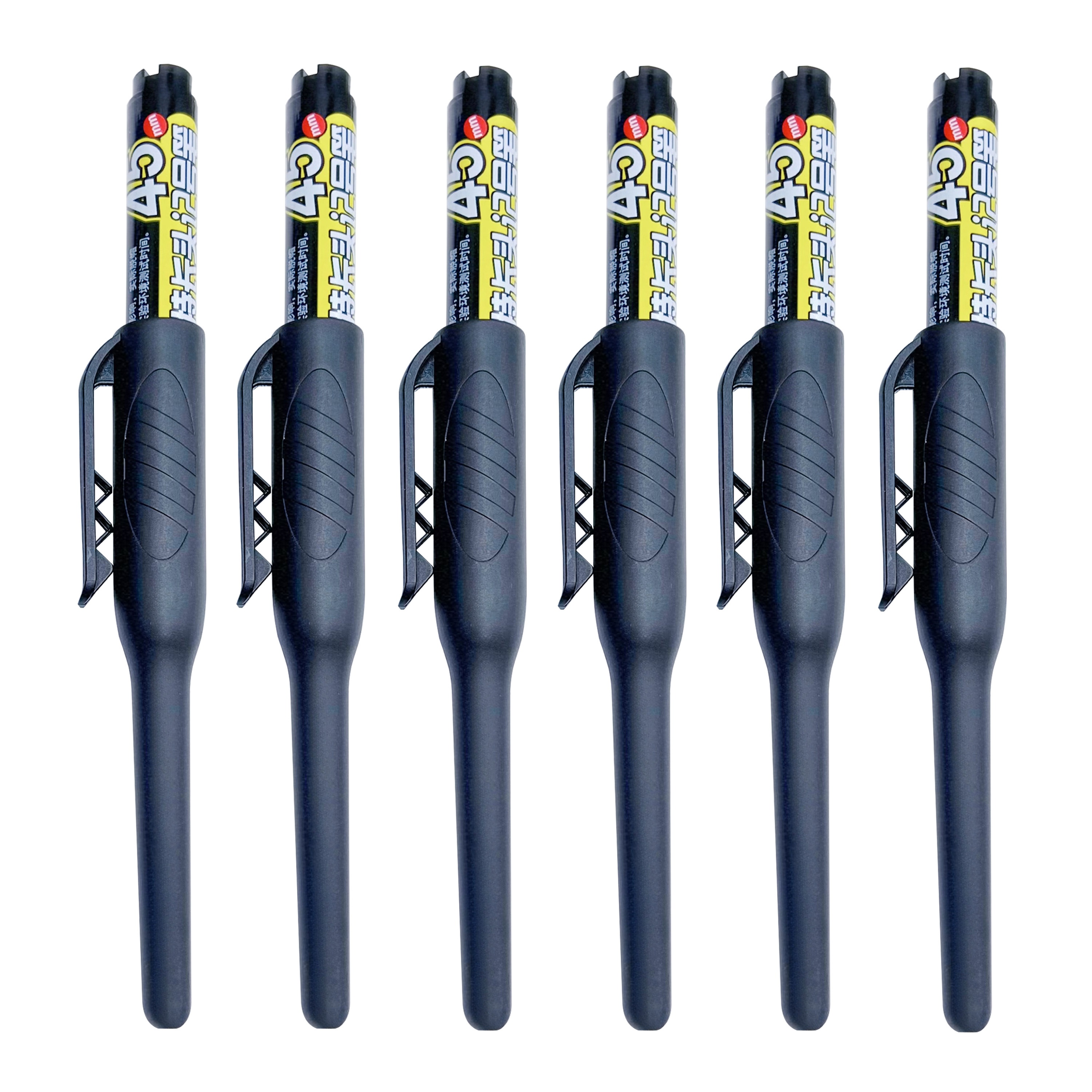TEMU 6pcs 45mm 긴니브 마킹 펜, 깊은 구멍용, 빠르게 건조되는 방수 오일기반 잉크 - 블랙, 블루, 레드 잉크, 펜 슬리브 스케일 디자인, DIY 공예 - 중간 포인트, 목재, 플라스틱, 유리, 금속, 세라믹, 인조 가죽, 건설 도구, 목공 도구, 건설, 욕실 설치, 장식 고정 및 목재 마킹에 적합, 내구성이 뛰어난 PPSU 플라스틱으로 제작