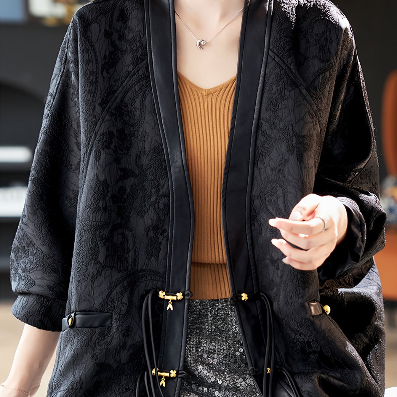 TEMU 플러스 사이즈, V넥 배트윙 슬리브 루즈 자카드 코트 2025 봄/가을 신상 중국풍 패치워크 여성용 탑