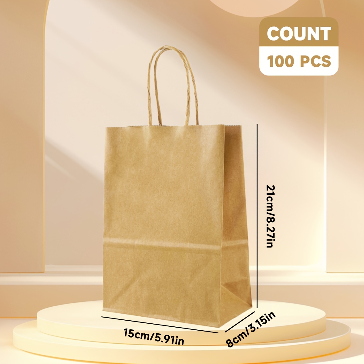 TEMU 100개 종이 봉투, 크기 5.91X3.15X8.27인치, 대량 손잡이 종이 봉투, 크라프트 종이 봉투, 쇼핑백, 소매 백, 선물 가방, 분류 용이, 보관 용이, 결혼식 및 파티 선물 포장에 적합