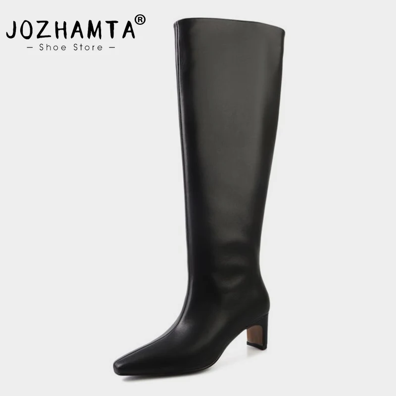 조즈마타 사이즈 34-43 2026 여성 진짜 가죽 롱부츠 패션 하이힐 겨울 부츠 오피스룩 데일리 드레스 슈즈