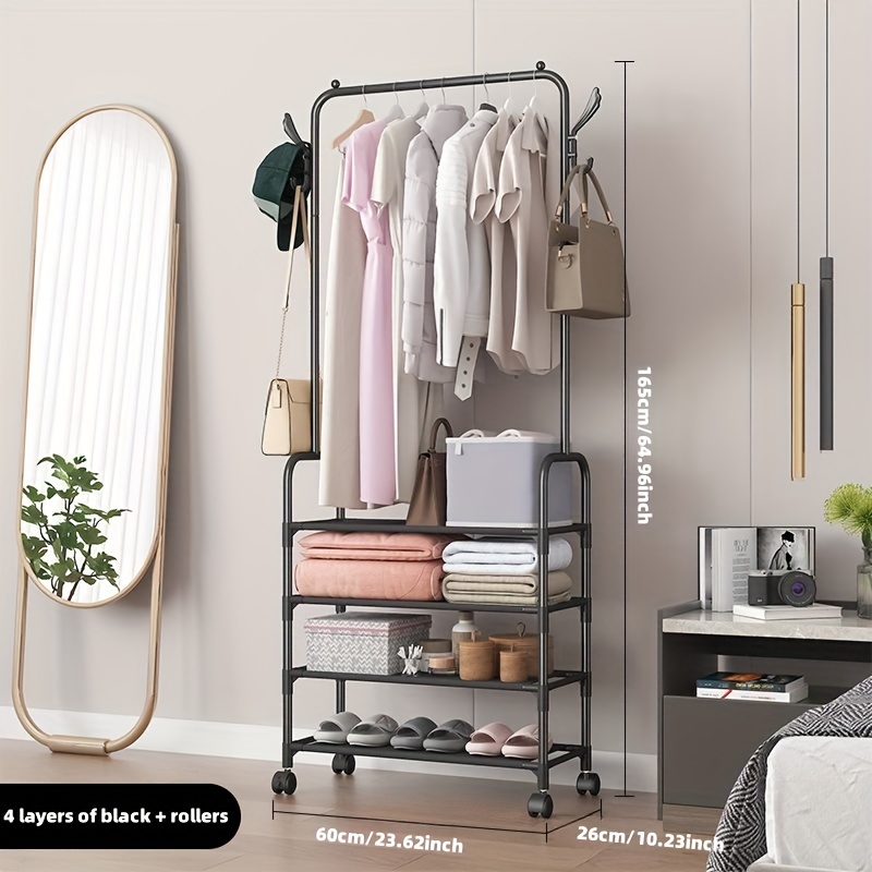 TEMU 침실용 철제 바닥형 간편 코트 랙, 휴대용, 공간 절약형, 신발 정리대 포함|빨래건조대|신발정리대