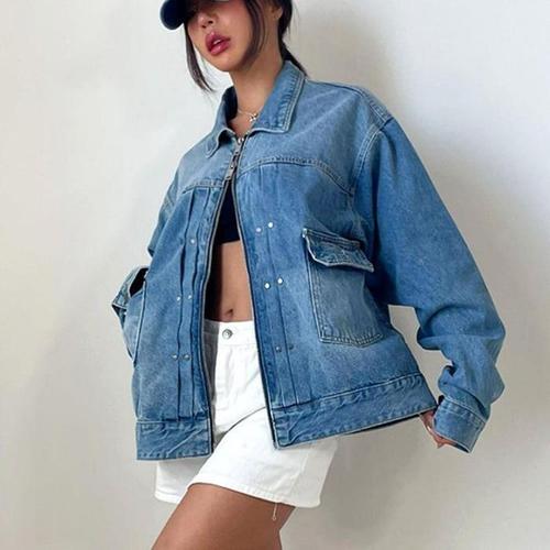 [다잇템]여자 투웨이집업 워싱 핀턱 스터드 청자켓 (18999895A)