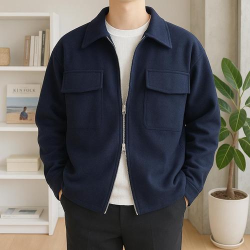 [지지블랙]모건 오버핏 투포켓 투웨이 집업 울 숏 자켓 점퍼 ZZBJK024