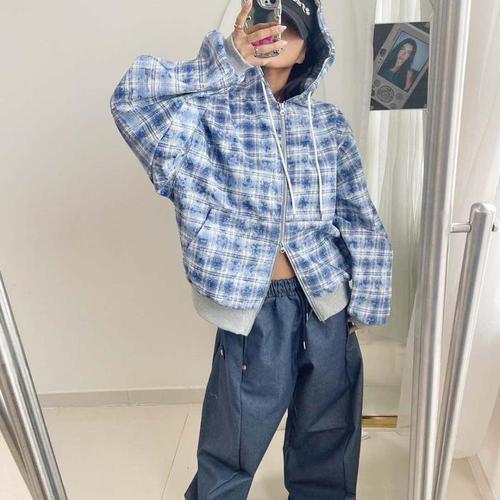 [다잇템]여자 남자 SS 격자 후디집업 투웨이집업 자켓 (12846864A)