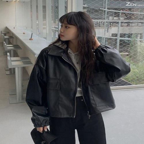 [SBD] 집업 크롭기장 레더 가죽 지퍼 투포켓 자켓 투웨이
