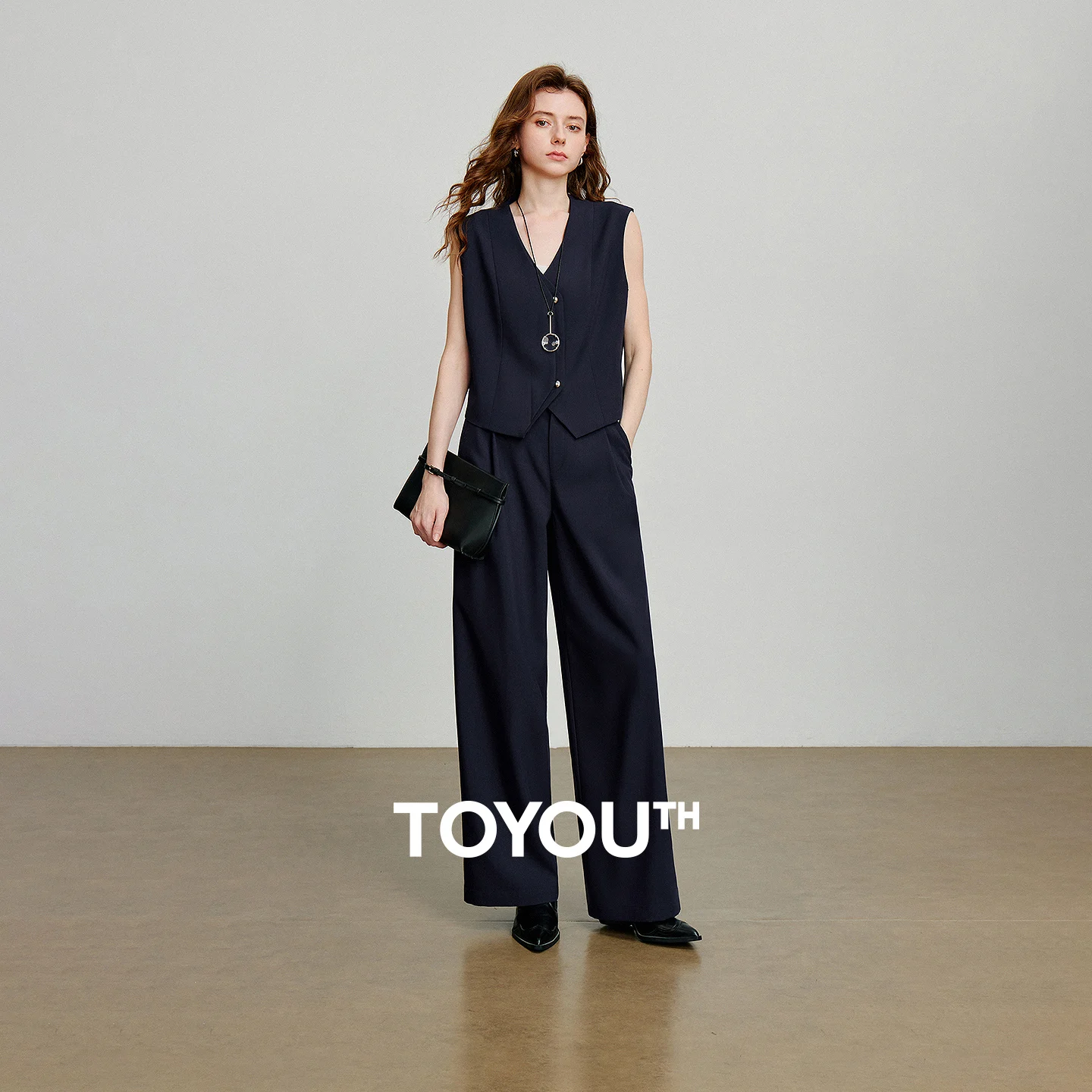 토이유스 여성 투피스 세트 2025 가을 신상 올드머니 스타일 민소매 베스트 수트 팬츠 정장 오피스룩 네이비 블루