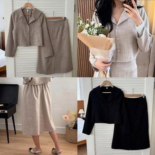봄 가을 여성정장세트 페플럼 자켓 스판 스커트 투피스 셋업수트 정장룩