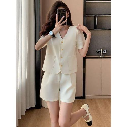 빛나는 판다여성 여름 얇은 정장세트 빅사이즈 반팔 세미 정장 자켓 반바지 캐주얼 투피스세트빛나는 판다