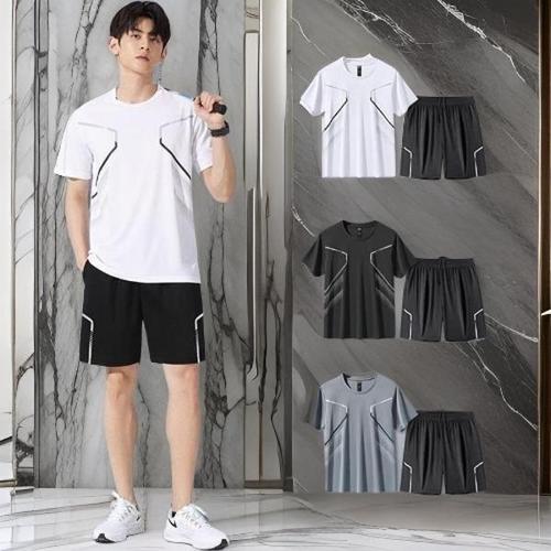 [다잇템][다잇템] 남성 쿨 U넥 반소매 트랙수트 하프팬츠 세트_20404840_588872