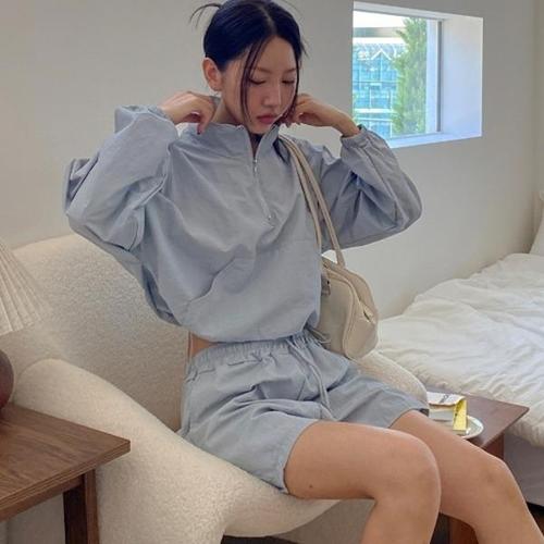[다잇템][다잇템] 여자 하프집업 트랙수트 윈드브레이커 투피스 핫팬츠 세트_20357990_588872