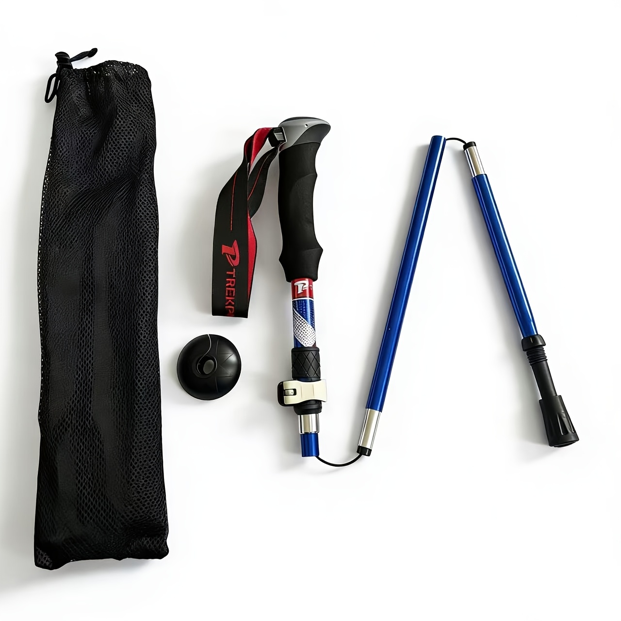 TEMU 초경량 알루미늄 합금으로 제작된 휴대용 트레킹 폴, 블루 아웃도어 하이킹 스틱, 미끄럼 방지 및 내마모성 기능이 있는 등산 장비 (여행용)
