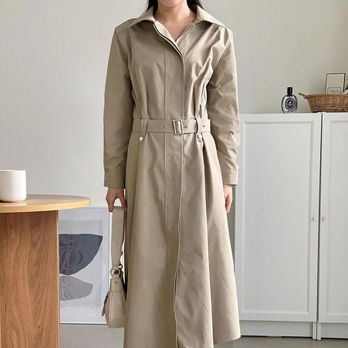 [다잇템]여자 카라넥 트렌치 봄하객룩 혁대 롱원피스 (30464156A)