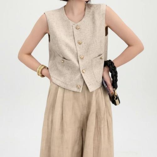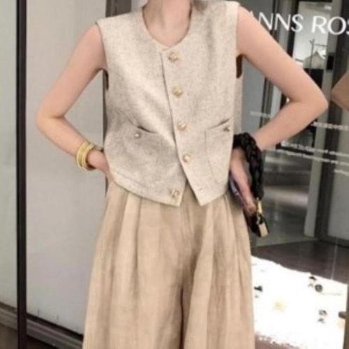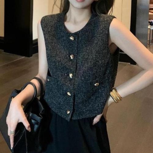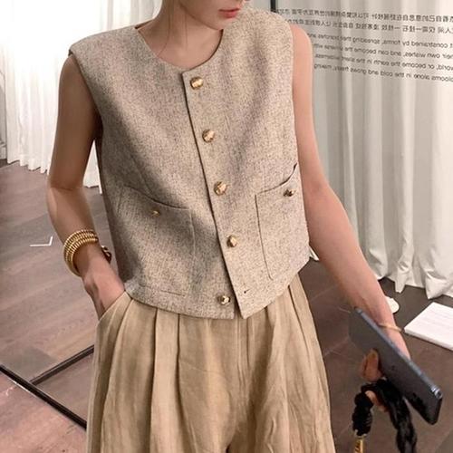 여성용 데일리 캐주얼 자켓 브이넥 트위드 민소매 조끼 Women's vest