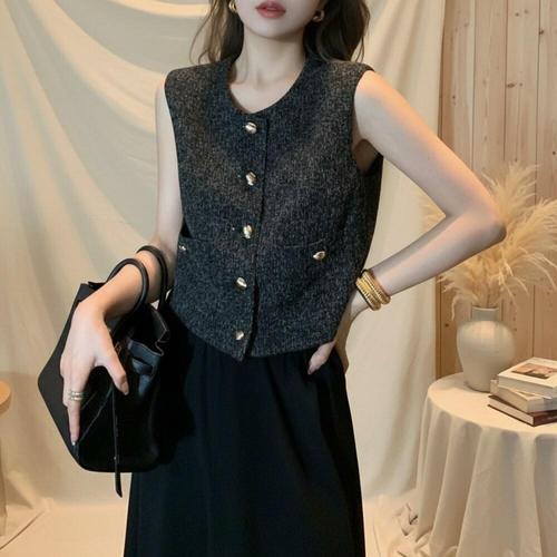 |CCJ6CBD|여성용 트위드 레이어드 크롭 베스트 봄가을 패션