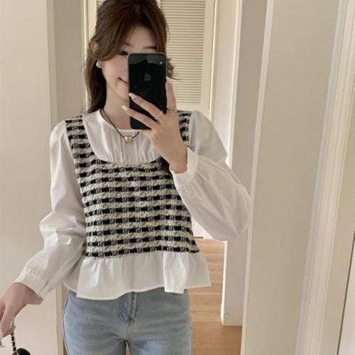 [다잇템]여자 코르셋 무지긴팔 트위드조끼 블라우스 (18739743A)