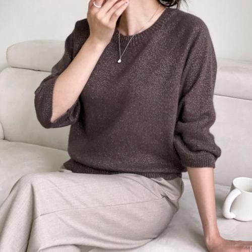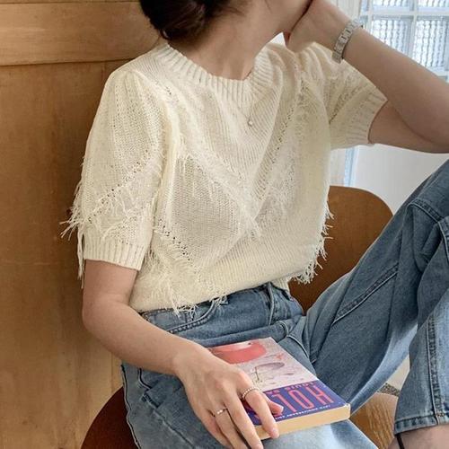 [다잇템]여자 SS 펀칭 트윙클 라운드 샤인 프린지 니트 (13928905A)