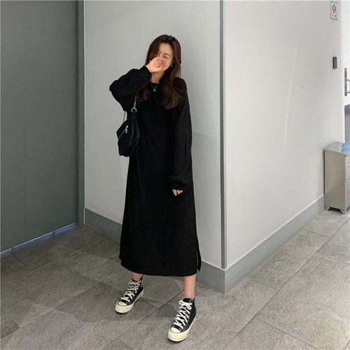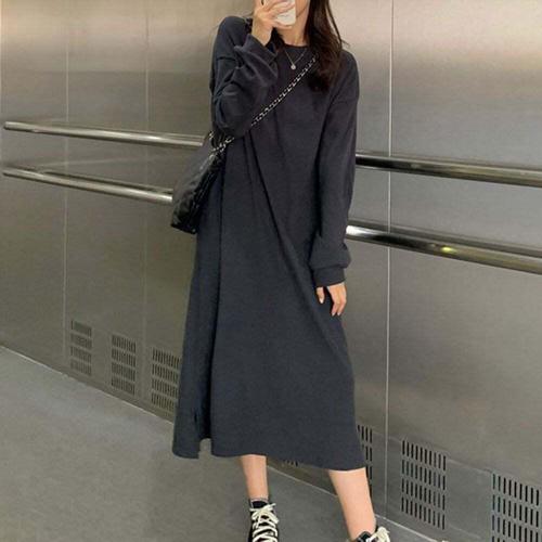 [셀럽하우스]루즈핏 ROHG4822 골지 롱원피스 밑단 트임 무지 데일리