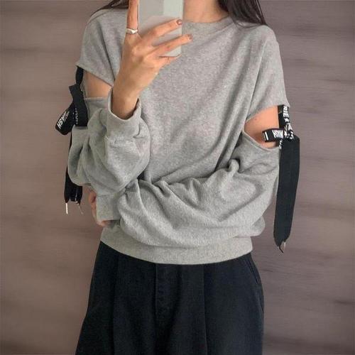 [옷자락]여자 오프숄더 크롭 트임 벌룬 박시 오버핏 맨투맨