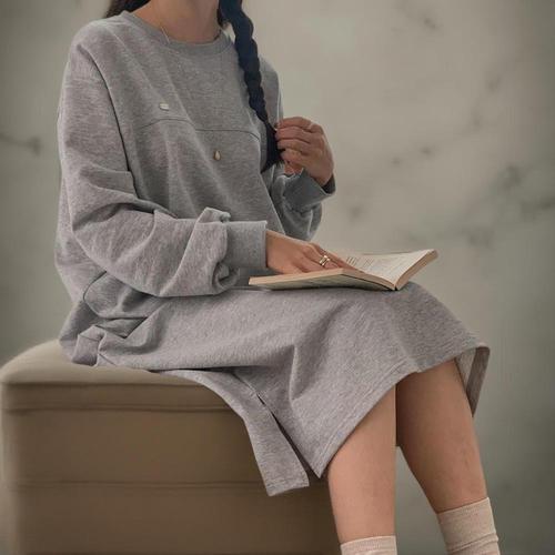 [다잇템_패션]여자 FW 양트임 코튼 등원룩 무채색 롱원피스