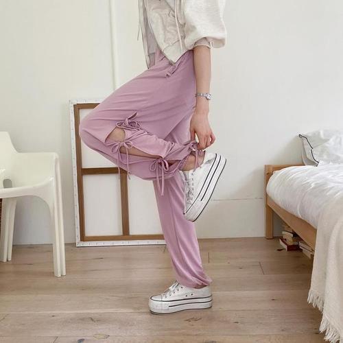 [다잇템]여성 트임 클래식 고무줄 엷은 신축성 바지 (47552002)