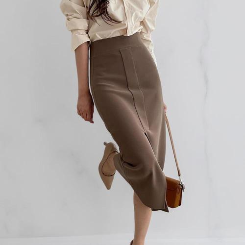 [옷자락]여성 잔골지 가을 하객룩 스판 뒤트임 H라인 롱치마