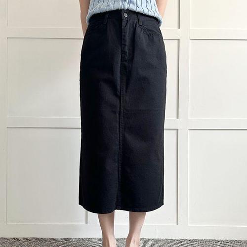 [시크릿라벨] 코튼앞트임뒷밴딩데님롱스커트