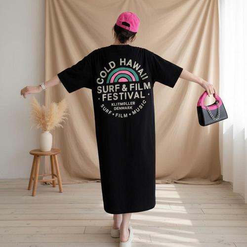 [옷은날개] 깔끔한 앞뒤레터링 밑단 양옆 트임 오버핏 반팔원피스