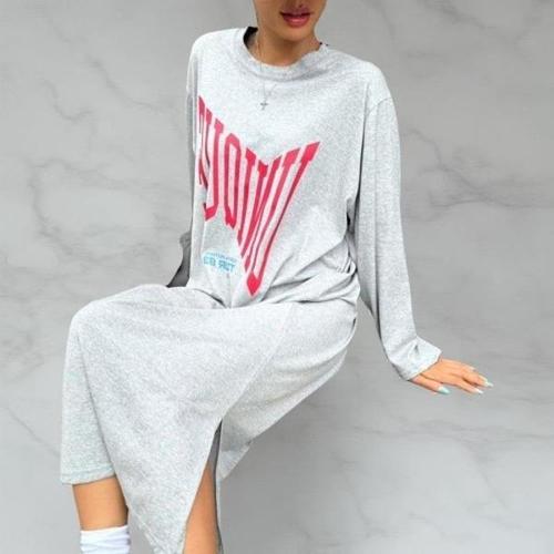 지고다그 빅사이즈 여성 루즈핏 중장기장 레터링 맨투맨 원피스 긴팔 티셔츠 가을겨울 데일리룩 HH2916