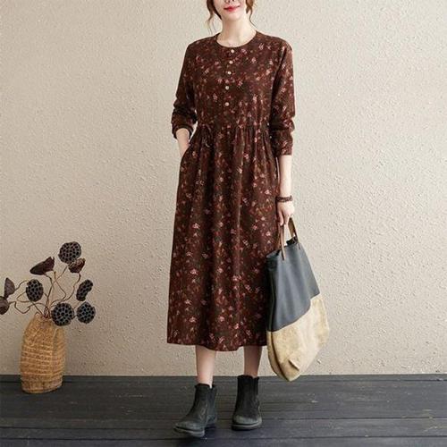 버튼 티 드레스 긴팔 겨울 실내복 롱 스트링 WFLMTP4
