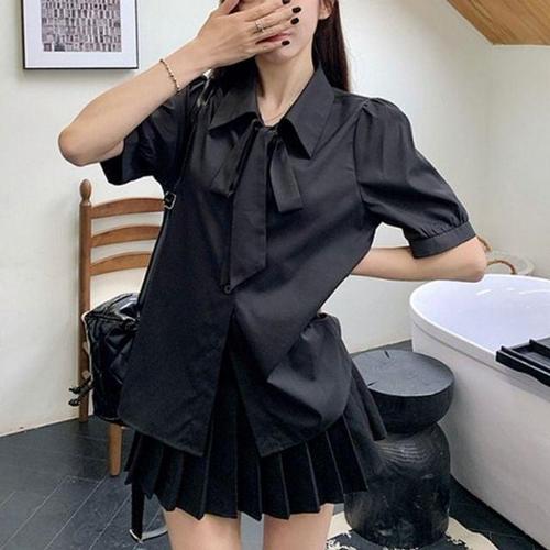타이 셔츠칼라 하프티 탑 캐주얼 여자패션 드레스셔츠