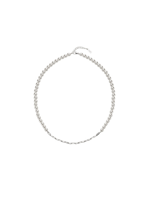 [티르리르] 티젠 맥시마이즈 쉘펄 6mm 포인트 체인 실버화이트 비드 목걸이 TNSSVW14035M