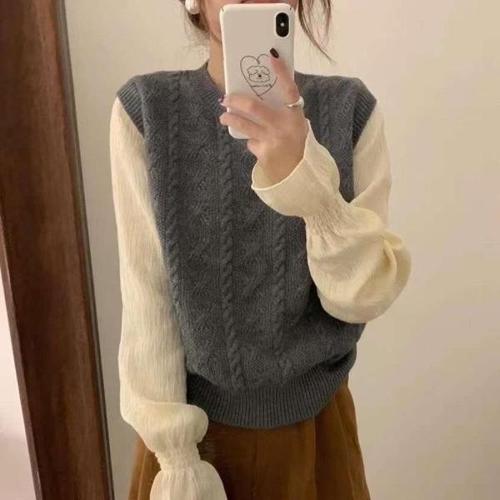 [신상오픈런]|CDH2FB4|티모코 스웨터 조끼 레이어드 데일리 블라우스 여성 스프링_18155540_597559