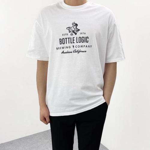 [엠클로]남자 오버핏 보틀 레터링 프린팅 반팔티셔츠 1컬러