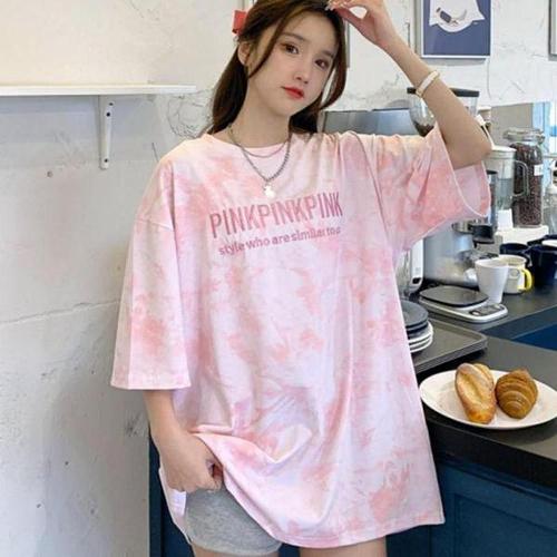[옷자락]여자 박시핏 10대 물감 나염 필기체 영패션 티셔츠