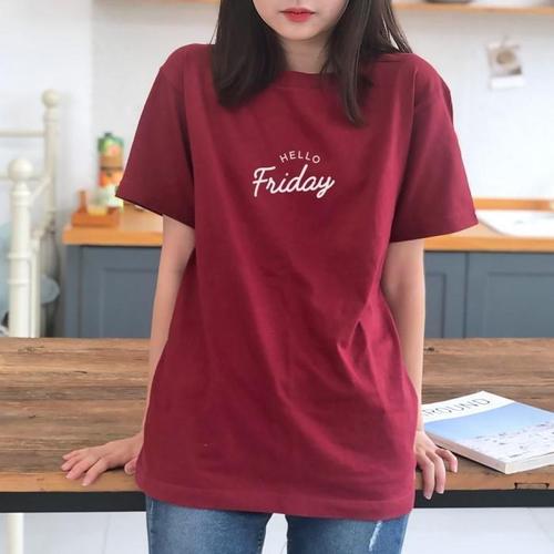 [험블][험블] 주문제작 레터링 루즈핏 여자 여름 반팔티셔츠 버건디 (5138030A)