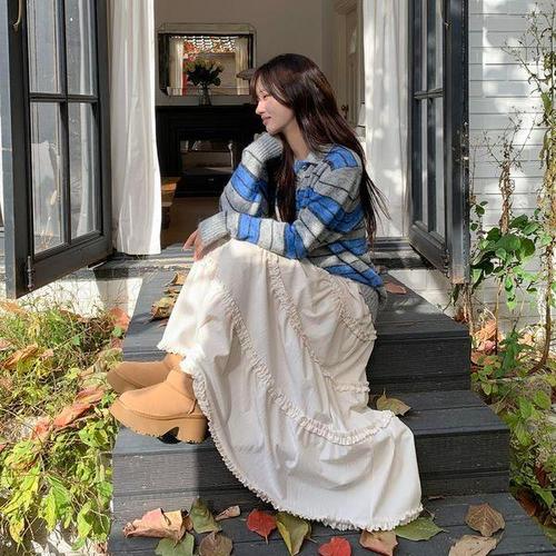 [다잇템]여자 프릴 클래식 나들이 티어드 롱스커트